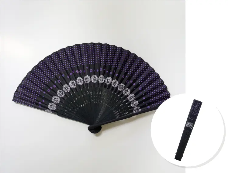 UVチェック機能付き、高級感のあるドット&レース模様の扇子。
