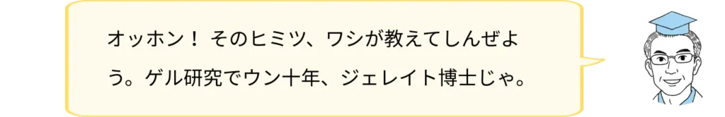今回はゲルの仕組みについて、専門の博士に聞きながら勉強していこうと思います!