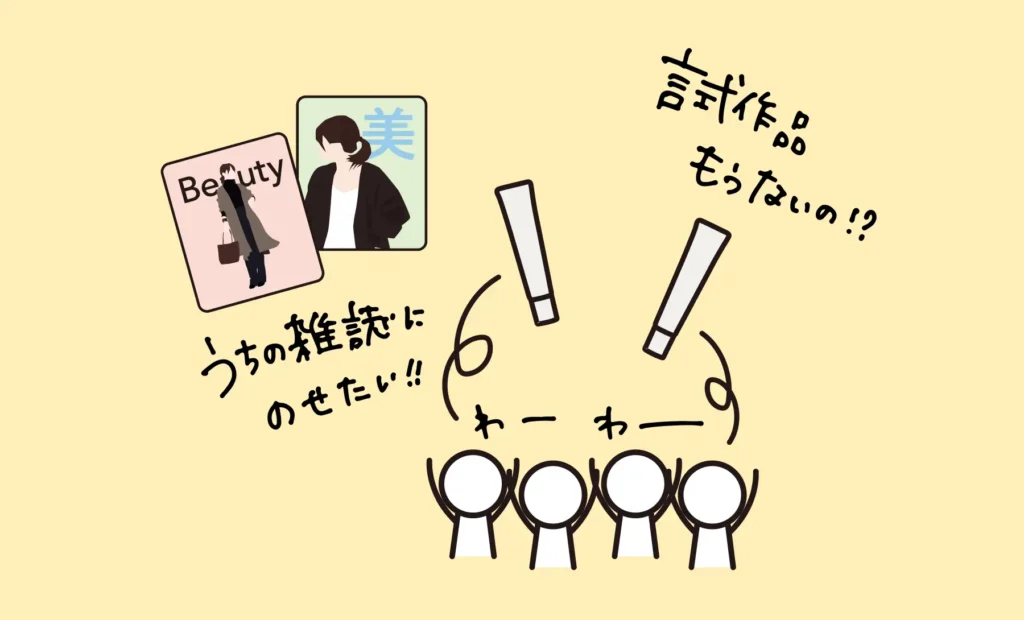 一方、PR担当は、まず雑誌やメディアの方々に限定的にご紹介。チラ見せのつもりでしたが“塗布直後の白さが時間の経過とともに透明に”という特性がむしろ大ウケ!