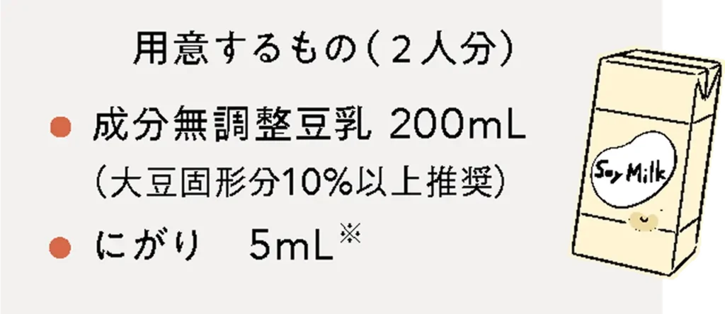 大豆に含まれるタンパク質と、にがりに含まれる成分が 合わさって温められることでぷるんとした豆腐になるという仕組み。 少ない材料で挑戦できるからぜひ実験気分で作ってみて!