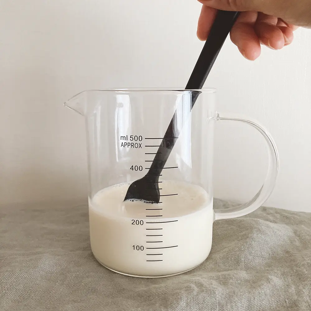 ①豆乳とにがりを入れ、泡立たない様に混ぜ合わせます