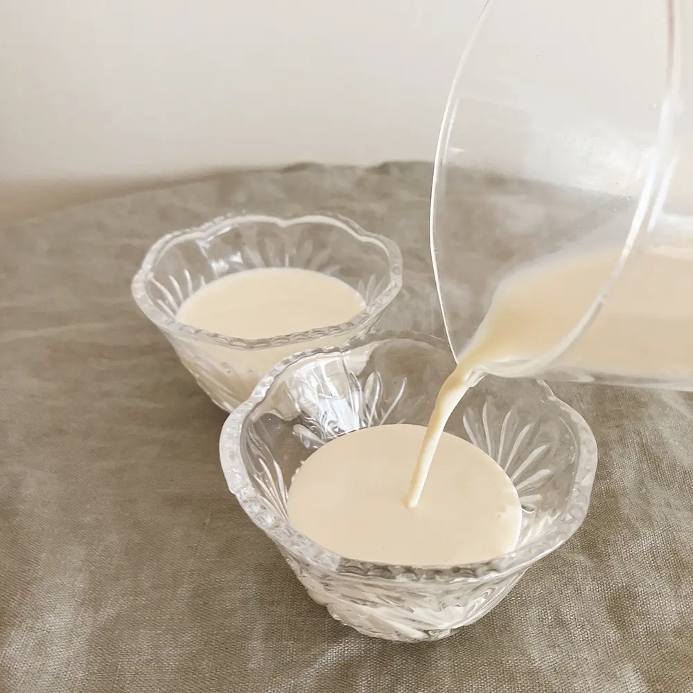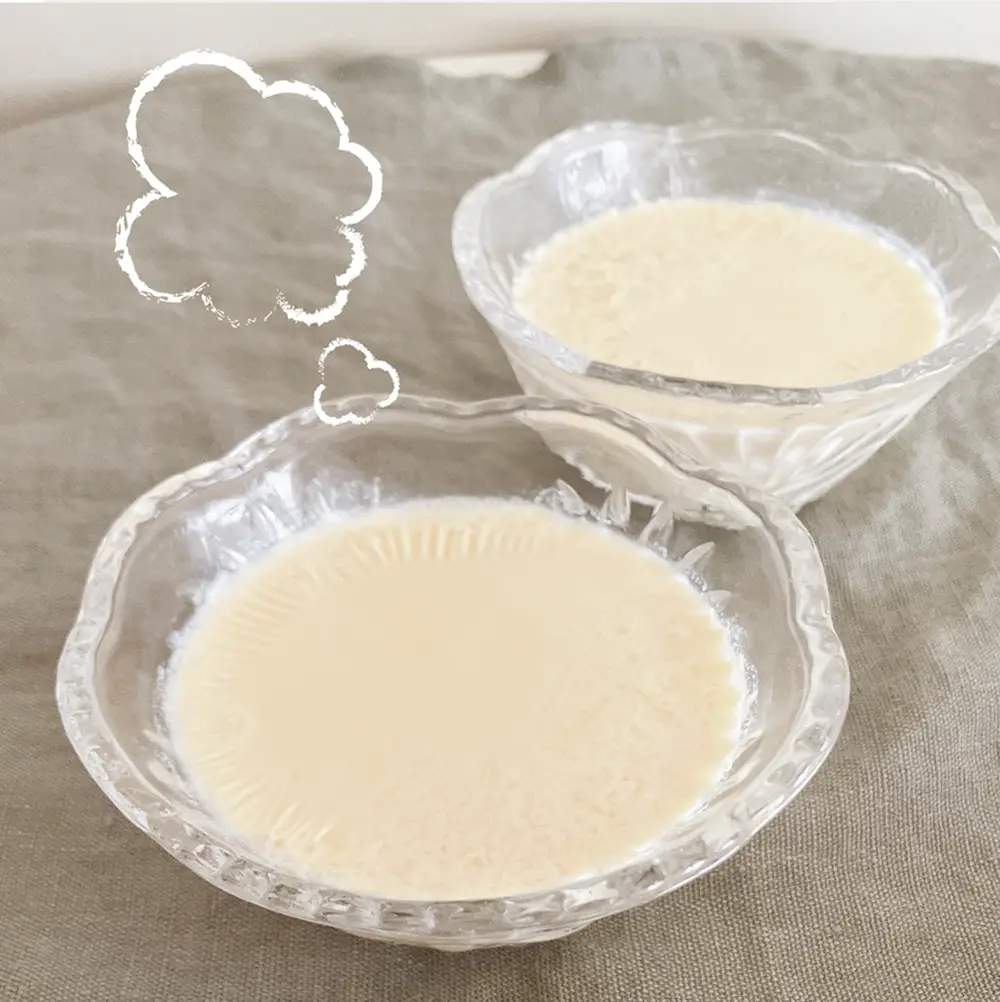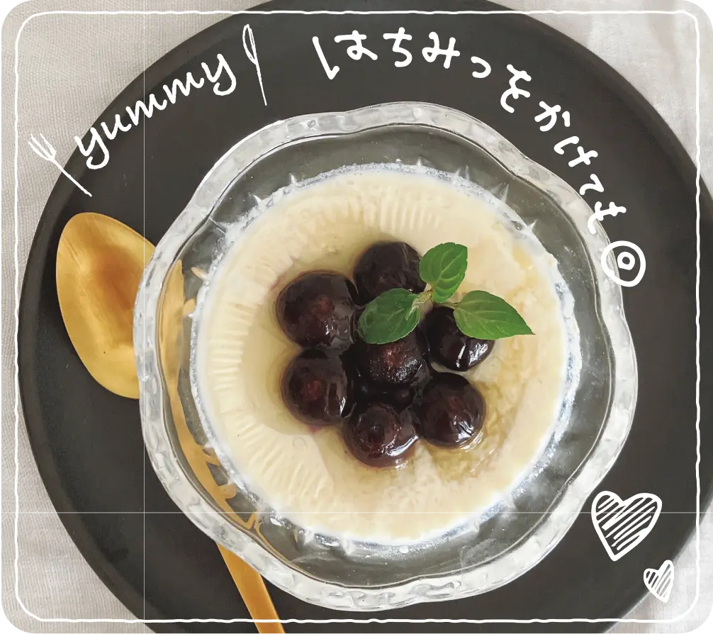 1人分 ❸で加熱後、器1つに対し、少量の湯で溶かしたゼラチン2.5gと豆乳50㎖、はちみつ大さじ1.5を混ぜ、冷蔵庫で冷やせばヘルシーなデザートに! フルーツをのせれば目にも華やかでお子様のおやつにもおすすめ♪
